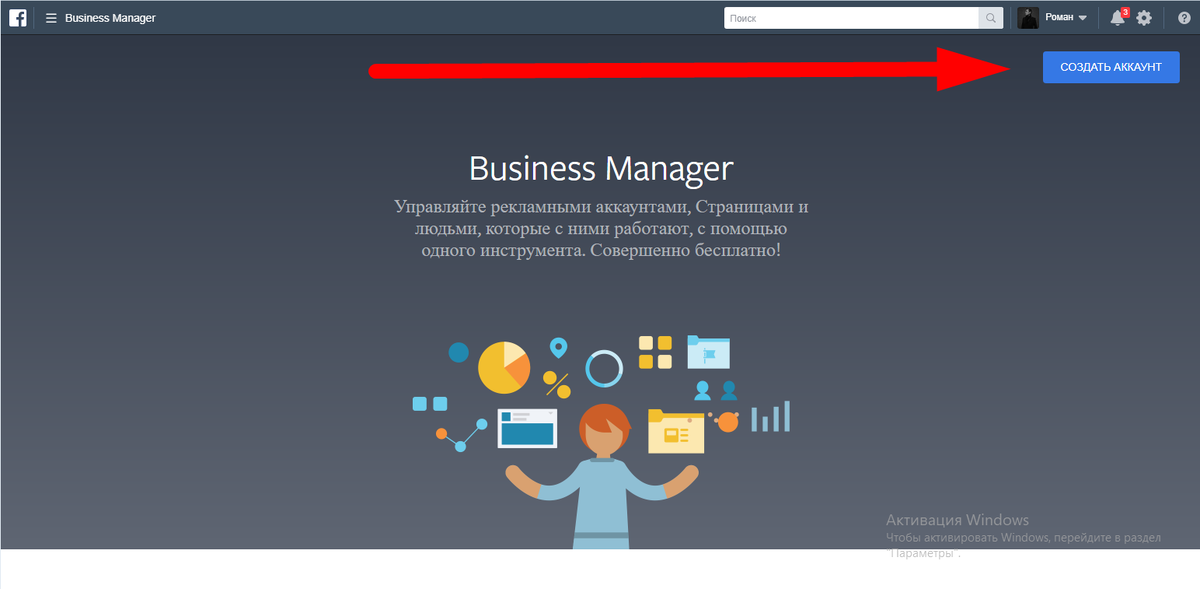 Для начала необходимо зайти на страницу создания Бизнес-менеджера (БМ). https://business.facebook.com/overview Заполняем формы корректными данными. Заходим в настройки раскрыв меню в верхнем левом углу и переходим в "настройки компании". Выбираем "рекламные аккаунты" и создаем рекламный аккаунт.