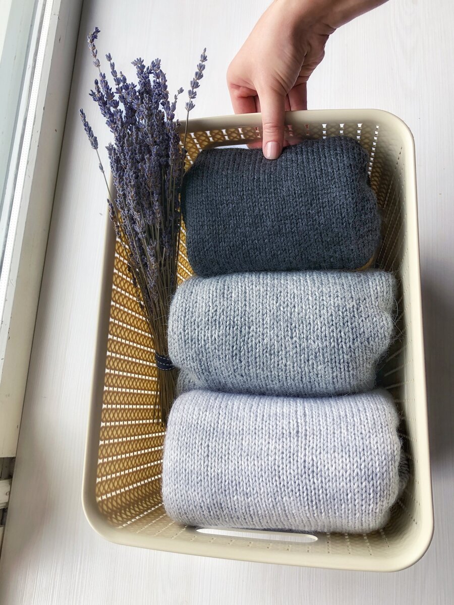 Сезонное и повседневное хранение Как правильно хранить свитера ⠀ Чтобы вязаная одежда прослужила вам дольше, важно не только соблюдать правила ухода, но и хранения 📦 ⠀ ▶️ Хранение на полках в сложенном виде. Если у вас дорогой кашемировый свитер, при складывании лучше его проложить папиросной бумагой во избежании катышек. ⠀ ▶️ Привычным способом вешать на плечики нельзя! Вещи вытягиваются и теряют форму. Но есть один необычный способ👌🏼 ⠀ ▶️ Сезонное хранение: 1. Стирка обязательна!!! Настиранные вещи привлекают моль и другую живность 🕷 ⠀ 2. Свитера и другие вязаные вещи лучше хранить в коробках, тканевых кофрах, чемоданах. Важно, чтобы вещи размещались свободно - дышали. Их нельзя спрессовать. 📦 ⠀ 3. На дно коробки можно поместить розмарин, лаванду или мяту в тканевом мешочке - это спасёт от моли и придаст приятный аромат. 🌱 В продаже сейчас есть специальные саше. ⠀ ▶️ В галерее примеры #как_хранить из👌🏼Pinterest ⠀ ▶️Как храню я. После курса по организации пространства у меня