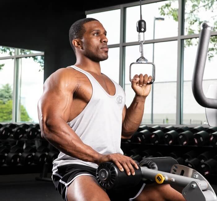Тяга одной рукой отличный вариант упражнения если вы хотите разнообразить свои тренировки спины в условиях тренажерного зала. Данное упражнение направленно на проработку широчайших, а так же круглых мышц спины, более того преимуществом выполнения упражнения одной рукой является то что вы можете в полной мере сконцентрироваться на работе целевой мышечной группы а так же избавится или предотвратить неравномерное развитие мышц расположенных зеркально. Включая данное упражнение в свой тренировочный план вы будете уверенны что ваши широчайшие мышцы спины развиваются симметрично. Техника выполнения Для правильного выполнения упражнения сядьте на скамью тренажера и установите ноги под валики. Возьмитесь одной рукой за рукоять прицепленную к блоку тренажера, рука слегка согнута в локте, локоть направлен в сторону. Выполните тягу одной рукой сгибая ее в локте, ваш локоть должен описывать дугу в воздухе и в крайней нижней точке быть прижат к корпусу, постарайтесь в нижней точке свисти лопат