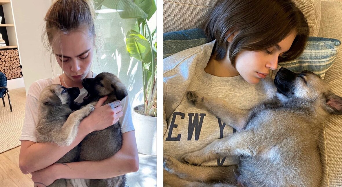 Кара Делевинь, Кайя Гербер и другие звезды приютили щенков на период самоизоляции