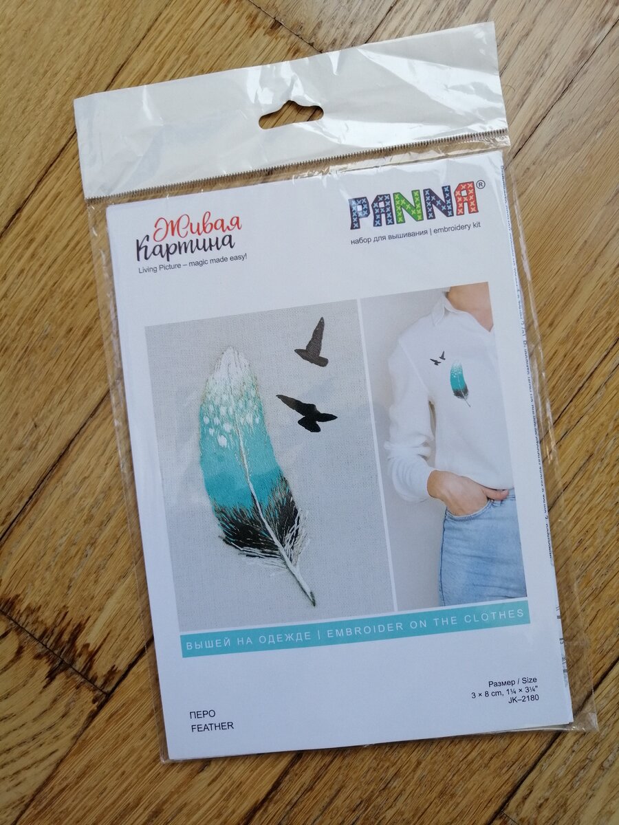Приветствую, друзья! Признаюсь, я человек довольно практичный. При всей любви к творчеству я каждый раз сталкиваюсь с проблемой - куда это все деть 🤦🏻♀️ "это все" - это результаты моих творческих экспериментов. Большинство своих работ я дарю, некоторые украшают мой дом. Но нужно понимать, что дом не резиновый 😅 даже если бы он был таковым, в музей его превращать точно не хочется! Поэтому для меня всё более остро встаёт вопрос поиска хобби, плодам которого можно найти реальное практическое применение. Идея вышивки на одежде - заявка на успех👏Сначала получаешь удовольствие от процесса вышивки, потом носишь оригинальную и уникальную вещь! Для первого опыта традиционно был найден готовый набор. Уже очередной раз я выбираю серию "Живая картина" от Panna. Не могу сказать, что мне по душе все сюжеты из серии, тем не менее "Перо" - наиболее нейтральный и подойдет к многим образам в одежде. Более того выбор наборов для вышивки на одежде в принципе не велик. Посмотрим, что входит в набор: