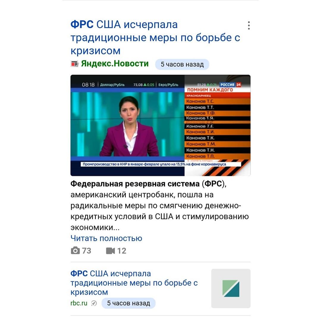 Сегодня сотни тысяч посетителей новостной рубрики отечественного поисковика, столкнулись с откровенной ложью, запудриванием мозгов и хамством по отношению ко всем нам. Как известно, вчера Совет управляющих Федеральной резервной системы США в пресс-релизе объявил о своём стремлении содействовать обеспечению максимальной занятости трудящихся и стабильности цен☝️. Последствия коронавируса будут оказывать негативное воздействие на экономическую активность в ближайшем будущем и создавать риски для экономических перспектив. В свете этих событий Комитет США принял решение снизить целевой диапазон ставки по федеральным фондам с 0 до 1/4 процента. Комитет надеется сохранить этот целевой диапазон до тех пор, пока он не убедится в том, что экономика пережила кризисные явления и находится на пути к достижению своих максимальных положительных показателей. Это действие поможет поддержать экономическую активность, сильные условия на рынке труда и минимальную инфляцию. Проще говоря, Федеральна