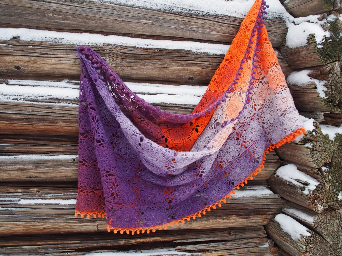 Тонкая шерсть словно создана для крючка! Когда я увидела эту расцветку - не могла пройти мимо, хотя сама хозяйка магазинчика пряжи с опаской спросила меня: уверена ли я, приобретая такую неоднозначную расцветку с сочным названием "Инжир"?