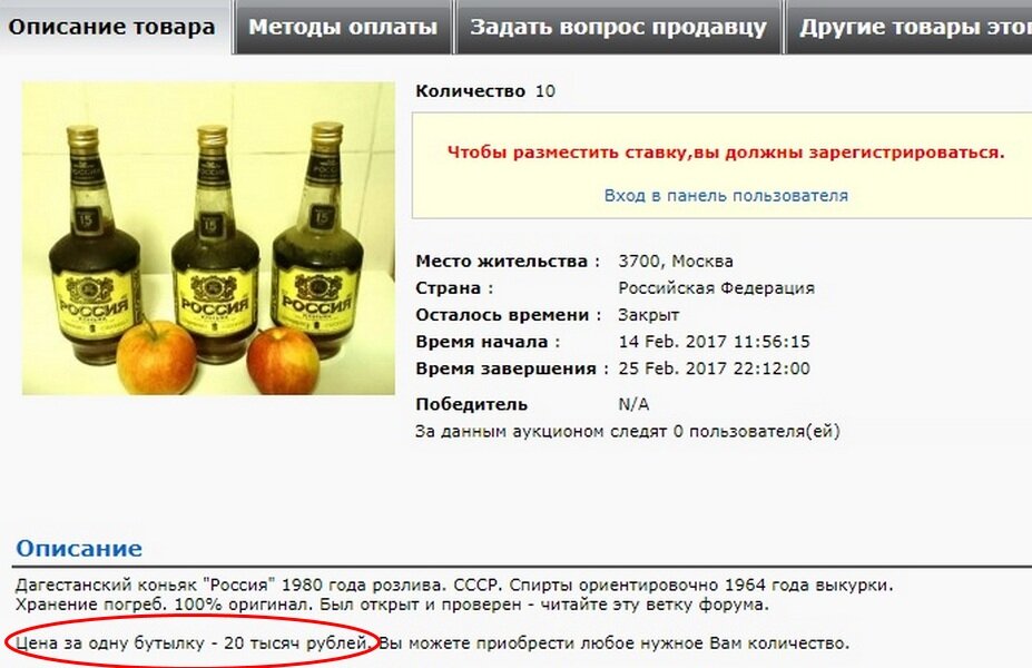 Тогда я пошел другим путем, долго копался в гугле и выяснил, на свою голову, что действительно зря открыл бутылку! Мог бы продать эту бутылку за 20 - 30 000 рублей ценителям на аукционе! Коньяк "Россия" Кизлярского завода оказался очень редким продуктом. Его было выпущено совсем немного примерно в 1980 году. То есть на сегодня этому коньяку, с учетом 15-летней выдержки спиртов, из которых он сделан, 55 лет!