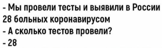 Из личных наблюдений и общения с близким окружением: В начале февраля 2020 года я проснулась с сухостью в горле и непонятным сухим кашлем, к вечеру температура поднялась до 38,5 а попытки её сбить приводили к краткосрочным результатам. Конечно, как порядочный гражданин, я вызвала врача, на что тот констатировал, да, у вас вирусное заболевание… и всё! Рекомендации: обильное питье, чередование жаропонижающих и лечение симптоматическое. В результате, в течение семи дней борьба с адской болью в горле, температурой тела от 39 до 40 градусов и сухим кашлем. Благо, есть опыт лечения гриппа и других вирусных инфекций, а знакомые медики подсказали препараты для ингаляции небулайзером для очистки трахеи и лёгких и вирус не смог привести к более тяжёлым последствиям, а также своевременное принятие витаминов, здоровое питание и свежий воздух, и через 3 недели организм восстановился. Итого: Около 7 тыс. потрачено в аптеке (без покупки иммобилайзера) Диагноз терапевта: ОРВИ На мой вопрос, почему