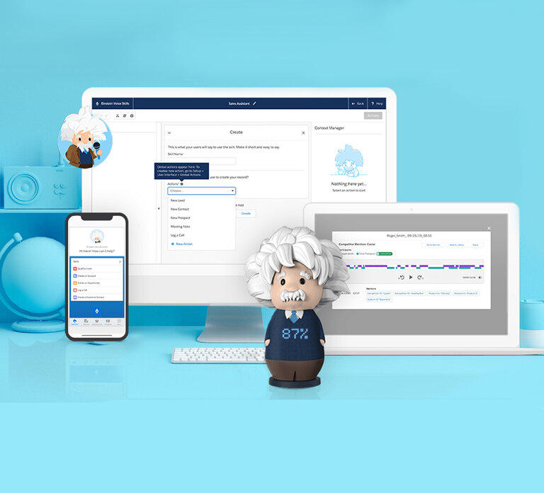 Общаться с Einstein можно с любого устройства. Он рассчитан как на пользователей платформы, сотрудников компании, ((Einstein Voice Assistant), так и для ее клиентов (Einstein Voice Bots).