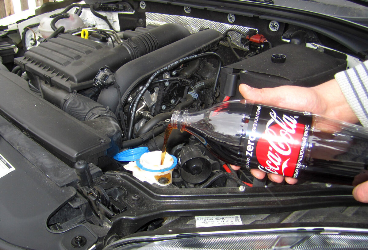 Многие из Нас замечали, что со временем, форсунки омывателя стекла начинают работать не так эффективно. Так же, на дорогих автомобилях начинает часто выскакивать ошибка, что бачок омывателя пустой, не смотря на то что жидкость в нём есть. Особенно, такая проблема на автомобилях марки Volkswagen. Связано это с тем, что датчик уровня жидкости начинает со временем окисляться. Так вот, делюсь с Вами очень простым способом, как можно всё это исправить. Вам нужно купить кока-колу LIGHT или ZERO. Обычную кока-колу НЕ БЕРИТЕ. В обычной кока-коле содержится очень много сахара, и это сделает только хуже Вашему автомобилю. В любой кока-коле есть лимонная кислота и ортофосфорная кислота. Она очень хорошо разъедает налёт, который образовался на форсунках или датчике. Вам не потребуется ничего разбирать или куда-то лезть. Наверное, уже все знают, что кока-колой можно удалить ржавчину на хромированных деталях, можно отмыть накипь в чайнике, она удаляет налёт с унитаза. В какой пропорции заливать? У м
