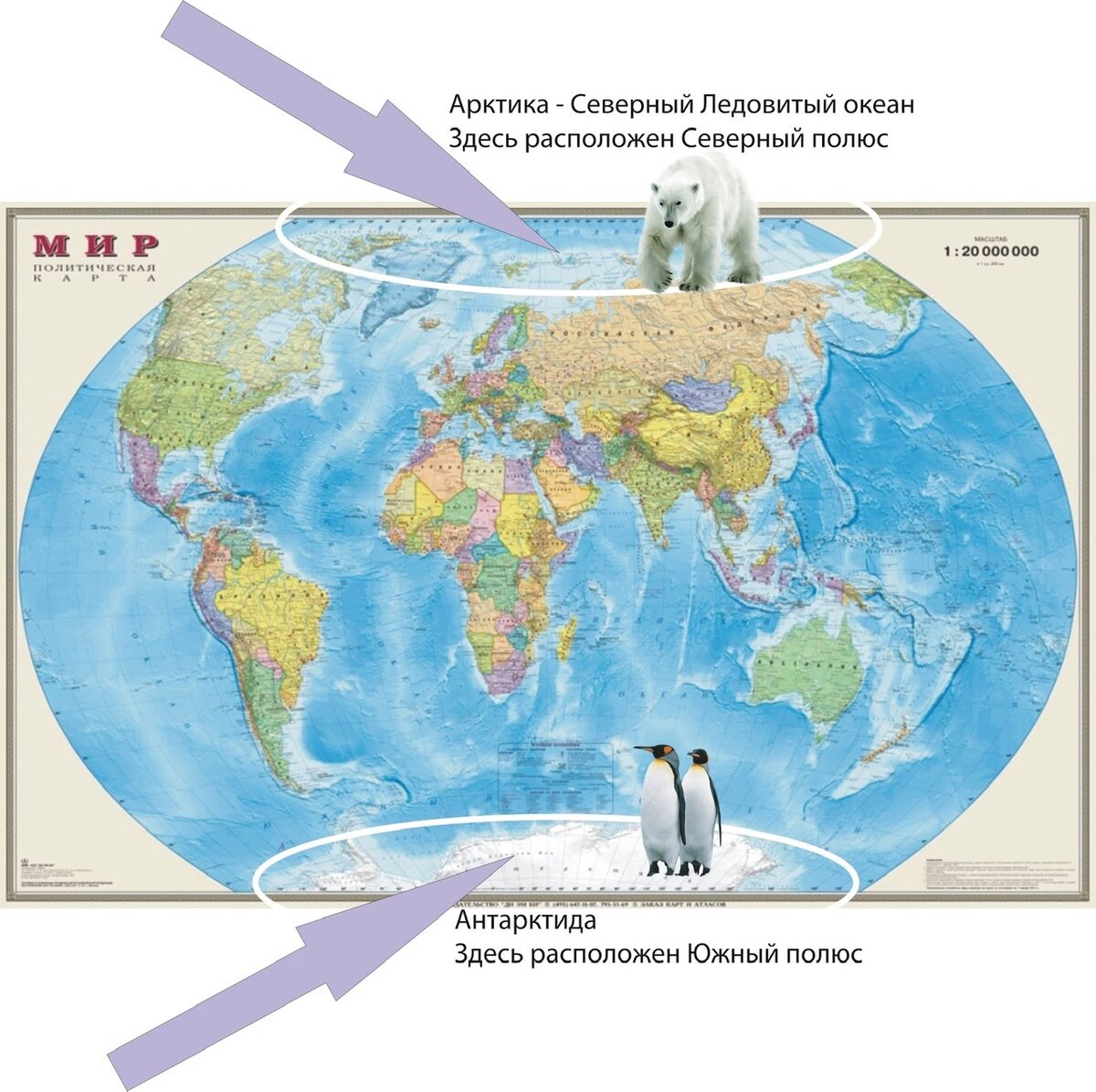 Антарктика, район Южного полюса, холоднее, чем Арктика, район Северного полюса.