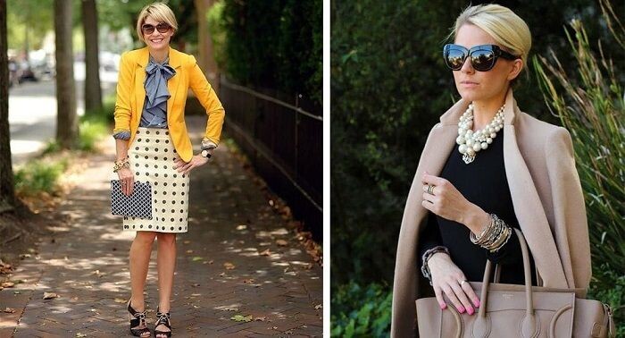 Как сказала моя мама: «Нам женщинам после 40 лет выглядеть красиво и элегантно не так уж и просто.» Вот к чему она придерживается во внешнем виде. · Будет лучше если сортировать свой гардероб, то есть избегайте сочетания большего количества цветов. Попробуйте включить в своей гардероб 3 основных цвета. Которые будут сочетаться с вашими аксессуарами и вашей обовью, особенно по цвету. · Не думаю что глубокое декольте или открытые руки после 40 будут привлекательны. Избегайте маячек, топы на тонких бретельках, а то руки будут выглядеть громоздкими и выдадут ваш возраст. · Сутулость которая настигает большинство женщин после 40 лет, можно решить многослойностью верхней части одежды, которая все это скроет · После 40 лет, я избавилась от своих коротких юбок и платьев. Я думаю что в моем возрасте будет идеальной длинной - ладонь выше или ниже колена. · К вашему гардеробу можно добавить мех и брильянты, так вы будите выглядеть более элегантнее. · Я не отказалась от каблуков. В основ
