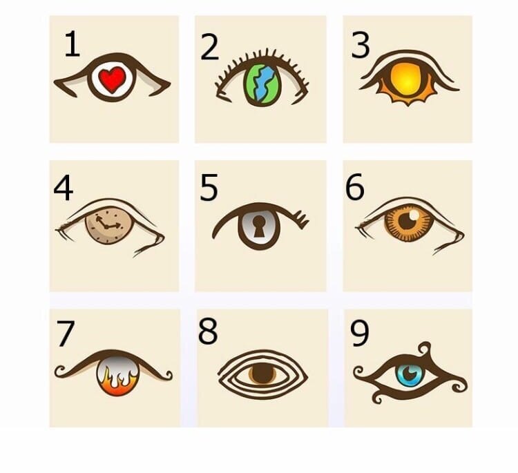 Посмотрите на 9 изображений глаз. Выберите тот глаз, который Вам больше всего нравится.