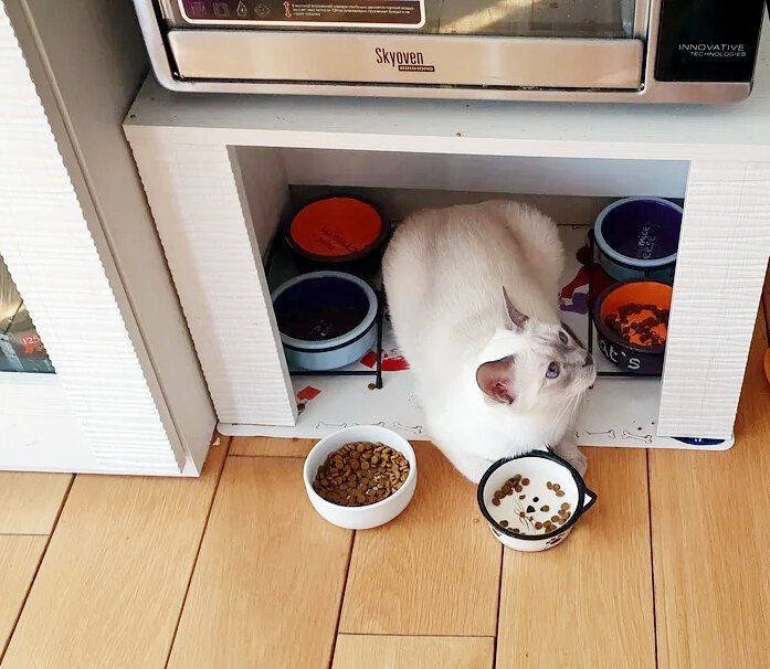 Похоже, наш кот Митя тоже поддался "истерии" по поводу продуктового дефицита и устроил сегодня пикет рядом с кошачьими мисками 😁