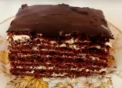 тесто 400 г муки 4 столовые ложки какао 2 яйца 150 г сахара 100 г масла 1 чайная ложка соды 1 чайная ложка порошка для выпечки 4 столовые ложки меда. Крем 500 мл 2 яйца 150 г сахара 100 г муки ваниль 200 г сливочного масла. Глазурь 3 столовые ложки какао 100 г сахара 50 мл. вода 20 г сливочного масла. Для начала смешиваем какао и муку в миске и откладываем миску в сторону . В эмалированной посуде развиваем два яйца . Добавляем сахар . Слегка смешиваем и добавляем сливочное масло . Снова смешиваем . Добавляем 1.5 - 2 столовые ложки соды и мед . Хорошенько смешиваем . После того , как все хорошенько перемешали , ставим на водяную баню на 15 минут . Постоянно помешиваем . После паровой бани эту массу наливает на смесь муки и какао . Замешиваем тесто . Готовое тесто раскатываем в длину и делим на восемь частей . Готовим колобки , накрываем их пленкой и ставим в холодильник на 15 минут . Теперь готовим крем . В пол литра молока убиваем два яйца , сахар , муку и немного ванилина . Вс