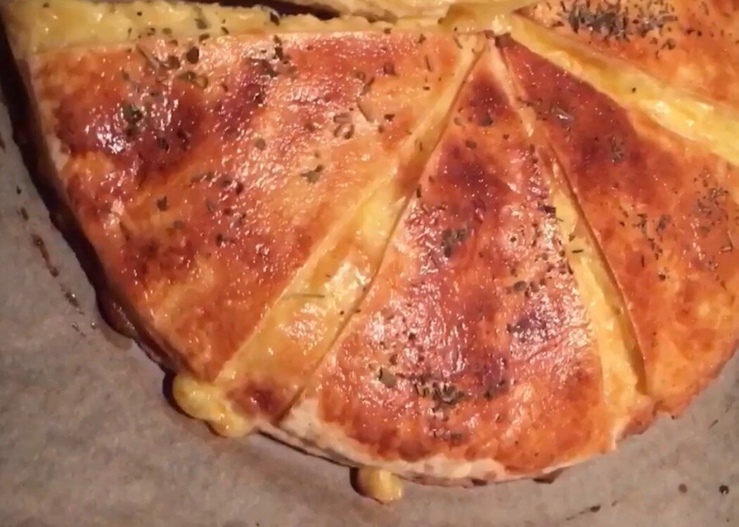 На тот случай, когда внезапно решили нагрянуть гости, и хочется чем-то вкусно угостить. Получается очень вкусно и сочно. Для экспресс пирога потребуется: • Лепешки тортилья - 4шт; • Сыр - 350г; (брала Голландский, а можно взять 2 или 3разных); • Яйца - 4шт; • Сметана - 2-3 ст.л.; • Соль/Перец - по вкусу. И так, начнём с начинки: Натираем весь сыр на терке, вводим 2 яйца, солим, перчим- мешаем. Убираем в сторонку. Далее нам необходимо приготовить заливку для нашего пирога: Для этого смешиваем 2 яйца и сметану. Теперь приступаем к пирогу. На противень кладём пергамент, сверху нашу 1ю лепешку и смазываем ее заливкой, затем слой начинки. Далее, накрываем сверху 2й лепешкой, и проделываем тоже самое. С 3й лепёшкой так же поступаем, выкладываем на неё всю оставшуюся начинку. 4ю лепешку, режем ножом для пиццы на равные кусочки (на 8шт) и выкладываем сверху оставляя между кусочками небольшое расстояние. Смазываем заливкой, посыпаем зеленью (можно укроп, или смесью трав). Ну все