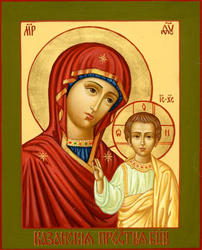 Заступнице усердная, Мати Господа Вышняго, за всех молиши Сына Твоего Христа Бога нашего, и всем твориши спастися, в державный Твой покров прибегающим. Всех нас заступи, о Госпоже Царице и Владычице, иже в напастех и в скорбех, и в болезнех, обременённых грехи многими, предстоящих и молящихся Тебе умиленною душею и сокрушенным сердцем, пред пречистым Твоим образом со слезами и невозвратно надежду имущих на Тя, избавления всех зол, всем полезная даруй и вся спаси, Богородице Дево: Ты бо еси Божественный Покров рабом Твоим. Кондак, глас 8-й: