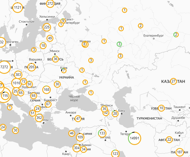Как распространяется коронавирус в России и в мире? - можно теперь проследить по онлайн-карте от Яндекса. Согласно приведенной в ней информации, на данный момент в мире заражено 183 419 человек, а погибло 7 163 человека или 4%, выздоровевших — 79 986 или 43%. Информация обновляется постоянно, поэтому данные быстро меняются. В России пока никто не умер, всего заболевших - 99. Больше всего — в Москве — 54 человека, в Санкт-Петербурге — 9, в Московской области — 8. В остальных городах от 1 до 3. В Европе больше всего заболевших в Италии — 27980, летальный исход — 2158, в Испании заболело 9942 человека, ушли из жизни 342, в Германии — 7272 и 17, во Франции — 6653 и 148 соответствено. В США заболевших насчитывается 4578 человек, летальных случаев 87. Но самая неутишительная статистика в стране, откуда этот вирус разошелся по всему миру: в Китае это соотношение: 80884 и 3224 Добавим, коронавирус был зафиксирован в более сотни стран по всему миру. ИА ВеликийНовгород.ру