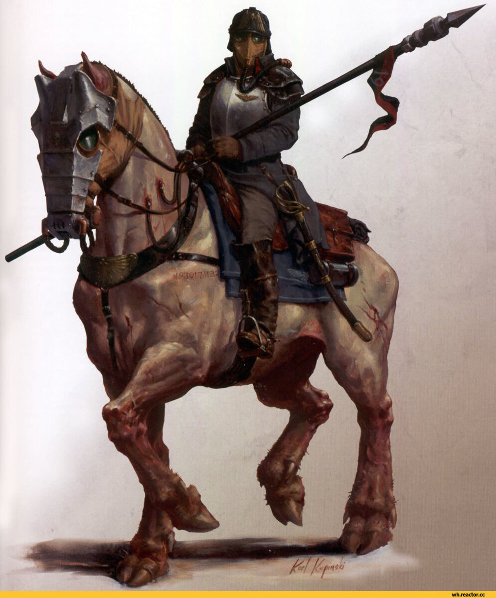 Во время гражданской войны на Криге, и верноподданным, и мятежникам постепенно становилось всё труднее применять танки и другие боевые машины. Запасы топлива и запчастей истощались, умелые люди и их знания гибли на войне, а всё новые и новые шрамы, что появлялись на лице планеты затрудняли передвижения гусеничной техники. Когда у верноподданных закончились танки, запчасти и экипажи, они возродили древнюю тактику применения кавалерийских частей, начав разводить обитающих на планете выносливых лошадей и генетически модифицировать их, превращая в боевых зверей для специально обученных кавалерийских рот.