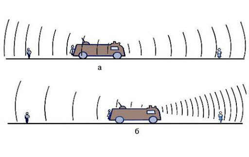Все мы когда-нибудь замечали, что если источник звука приближается к нам, то его звук более высокий, а когда удаляется, звук становится более низким. Когда источник звука статичен по отношению к нам, мы его слышим без всяких искажений. Для примера возьмем машину, которая проезжает мимо вас; для водителя звук не меняется (машина статична по отношению к водителю), но вы, скажем, стоите на обочине, и вы слышите машину громче, когда она приближается к вам, но когда удаляется, то тише. Это явление называется эффектом Доплера.