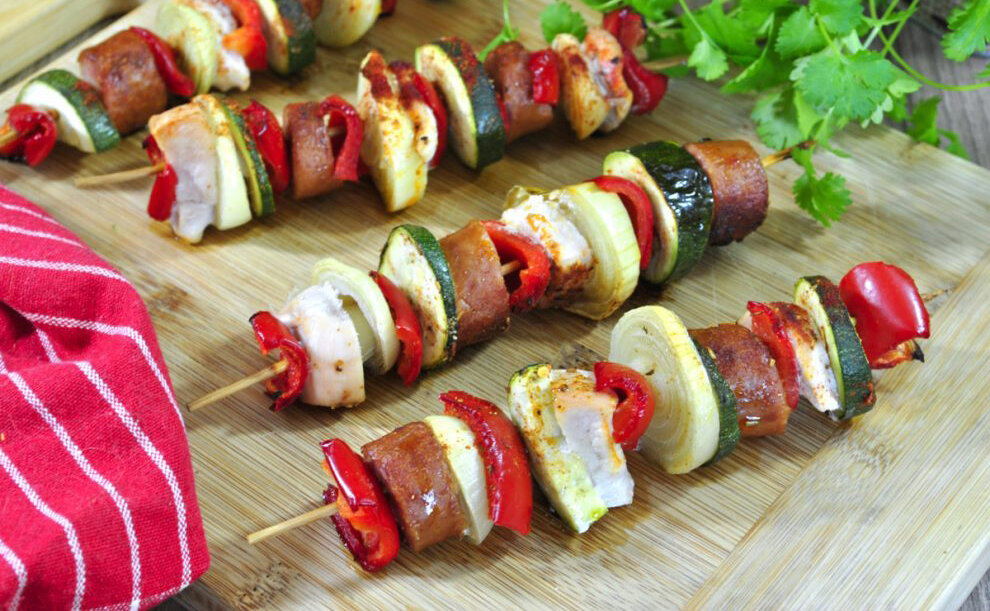 Шашлык с колбасой, курицей и овощами - это простое, вкусное блюдо, которое готовится на гриле или в духовке. Поскольку сезон барбекю в самом разгаре, рецепт определенно пригодится. Шашлык можно приготовить разными способами, с разными видами мяса, овощей и даже фруктов. Ниже приведен рецепт с моими любимыми начинками, ингредиенты достаточно универсальны, чтобы каждый мог наслаждаться. Их можно приготовить и мариновать за несколько часов до выпечки, тогда они станут еще вкуснее.