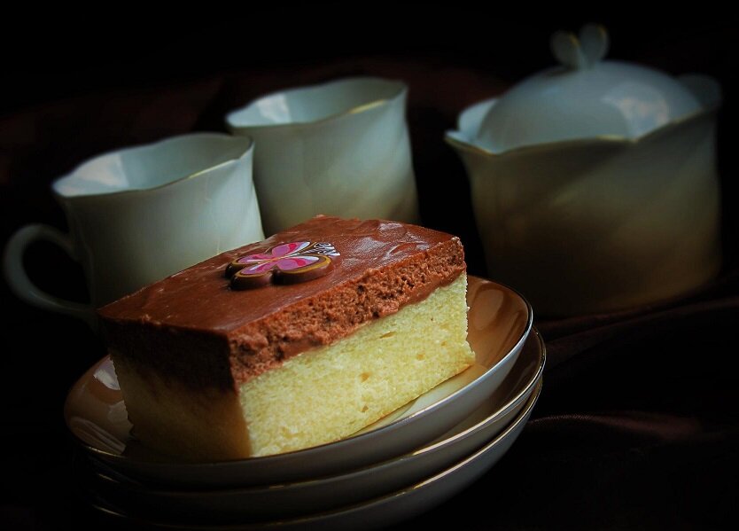 какао - 3 ст. л. Яйца смешиваем с сахаром и взбиваем до светлого воздушного крема. Добавляем ванилин, манку, цедру и творог. Его предварительно нужно протереть через сито. Тщательно вымешиваем все ингредиенты, но уже не взбиваем. Форму для выпечки застилаем пергаментом и выливаем в нее творожную массу. Запекаем при 170 градусах 25 минут, чтобы творог схватился. В это время делаем сметанную часть. Для этого смешиваем сметану, сахарную пудру и какао. Немного взбиваем и выливаем на творожны