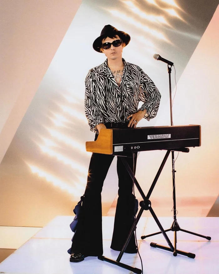 Это ГДР-овский Vermona Synthesizer 1982 года выпуска. Монофонический аналоговый синтезатор с двумя VCO, единственный, выпущенный Вермоной. В клипе, по классике жанра, ни к чему не подключен и стоит на сцене для красоты. При создании трека вполне могла использоваться - я слышу нечто похожее на её голос в припеве. А вот как она звучит: