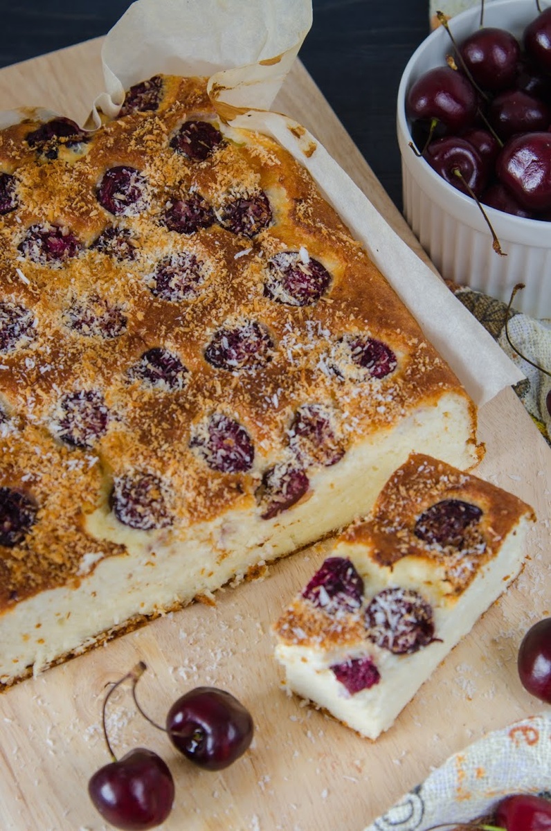 Творожная запеканка - это не только вкусный завтрак. Это неисчерпаемый источник вдохновения. Можно готовить классический вариант из творога, но если добавить ягод, шоколадных капель или других ингредиентов, то блюдо заиграет новыми красками. А на столе всегда будет вкусный завтрак. Например, добавляем сезонную черешню и кокосовую стружку и получаем очень яркое блюдо. Ингредиенты: Приготовление: Приятного аппетита!