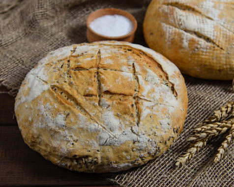 Предлагаю приготовить простой белый хлеб в духовке по рецепту из хлебопечки. Когда у меня работала хлебопечка, я всегда пекла хлеб в ней. Но 14 лет ее истощили, и даже смена ремней и прочие манипуляции не смогли ее спасти от износа. А вкусного хлеба хочется, и рецепты остались вполне годные, проверенные временем. В качестве формы подойдёт керамическая форма для, выпечки или чугунная сковорода (я готовила в последней). Я готовила два замеса теста по рецепту на 700 г. В первый забыла добавить семена льна в процессе вымешивания. И уже руками подмешивала семя, поэтому оно неравномерно распределилось. Во второй замес про лен я не забыла, и семя в тесте красиво распределено. На вкус это никак не влияет. 1. В чашу миксера выкладываем по порядку воду (может потребоваться чуть больше или меньше) тёплую (40°С), соль, сахар, муку и сверху дрожжи сухие. Аккуратно начинаем перемешивать до объединения всех ингредиентов. Даем минут 5 отдохнуть, снова вымешиваем. Добавляем семя льна и хорошо переме