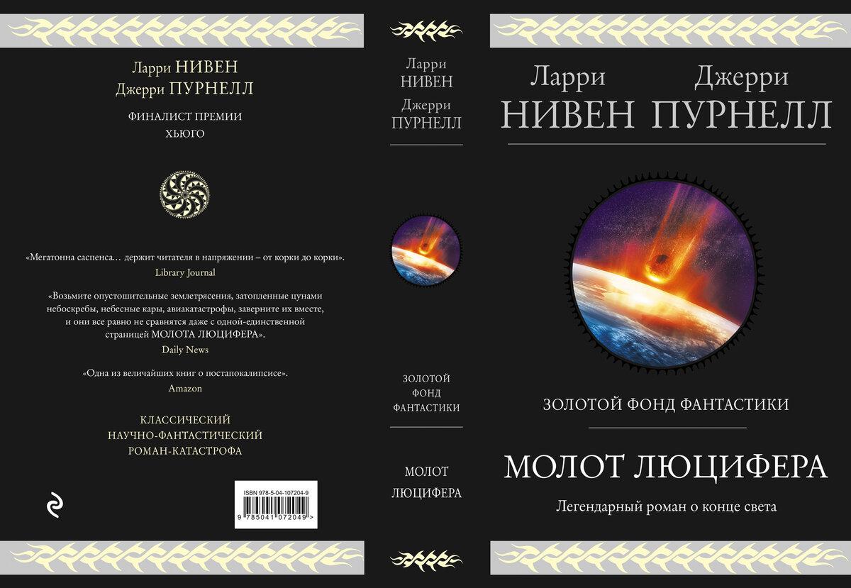 Размещена: В мае в серии "Гиганты фантастики" выйдет роман "Молот Люцифера" Ларри Нивена и Джерри Пурнелла. Аннотация: Гигантская комета взрывается в атмосфере Земли. Бомбардировка планеты ее обломками вызывает катастрофу: землетрясения, извержения вулканов, цунами в тысячу футов и бесконечный дождь с черных от пепла небес. Города затоплены, а океаны обращаются в пар. Аварии на атомных электростанциях провоцируют панический запуск баллистических ракет. Начинается новый Ледниковый период. Цивилизация в руинах, люди объединяются в группы с разной идеологией, чтобы выжить и победить. Людоеды-милитаристы, религиозные фанатики, выживальщики – кому будет принадлежать будущее? Из отзывов на роман: kon28: "Одна из наиболее талантливо и подробно выписанных картин апокалипсиса, вызванного падением астероида. Очень много действующих лиц, причем разных, с различными взглядами и устремлениями, моралью и подходами к решению проблем." vad: "Хорошая книга-катастрофа. Выгодно отличается от собратьев