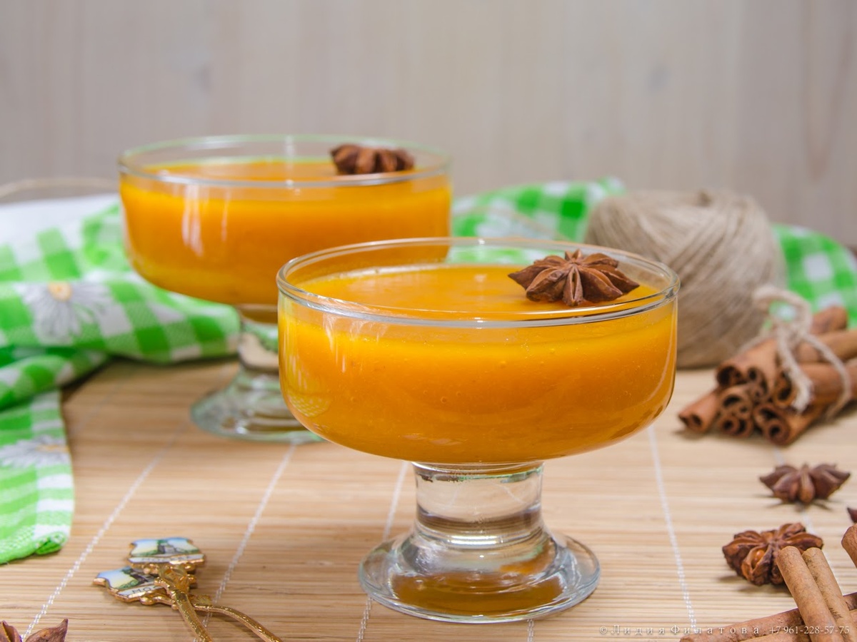 Предлагаю рецепт вкусного, ароматного и очень красивого тыквенного желе с апельсином. Это десерт, который прекрасно подойдет для осеннего меню и удивит гостей. Рецепт рассчитан на 4-6 порций. 1. Тыкву очистите от кожуры и семян. Нарежьте мякоть небольшими кубиками. 2. Переложите тыкву в кастрюлю, добавьте 100-150 мл воды, чтобы она немного покрывала дно. Тушите под крышкой на среднем огне около 15-20 минут, пока тыква не станет совсем мягкой. 3. В конце приготовления добавьте специи (корицу, мускатный орех). Дайте немного остыть. 4. Измельчите тыкву до однородного пюре с помощью блендера. Должно получиться около 350-400 мл густого пюре. 5. Из одного апельсина выжмите сок. У вас должно получиться примерно 150-180 мл. У второго апельсина снимите цедру и очистите фрукт от кожуры и белых пленочек. Нарежьте очень тонкими дольками или небольшими кусочками — они будут внутри желе. 6. Если у вас листовой желатин: замочите его в большой миске с холодной водой на 5-7 минут, пока он не размягчитс