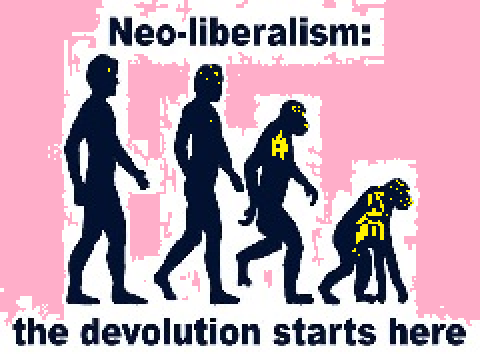 …Это идейно-политическое прикрытие транснациональной клики финансистов, уничтожающей любую стороннюю самоорганизацию, создавая скрыто-враждебные имитаторы. Неолибералы, перекраивая под себя мировой порядок, навязывая разрозненный, расслабленный и зависимый потребительский образ жизни, устанавливают контроль надо всем до чего в состоянии дотянуться.