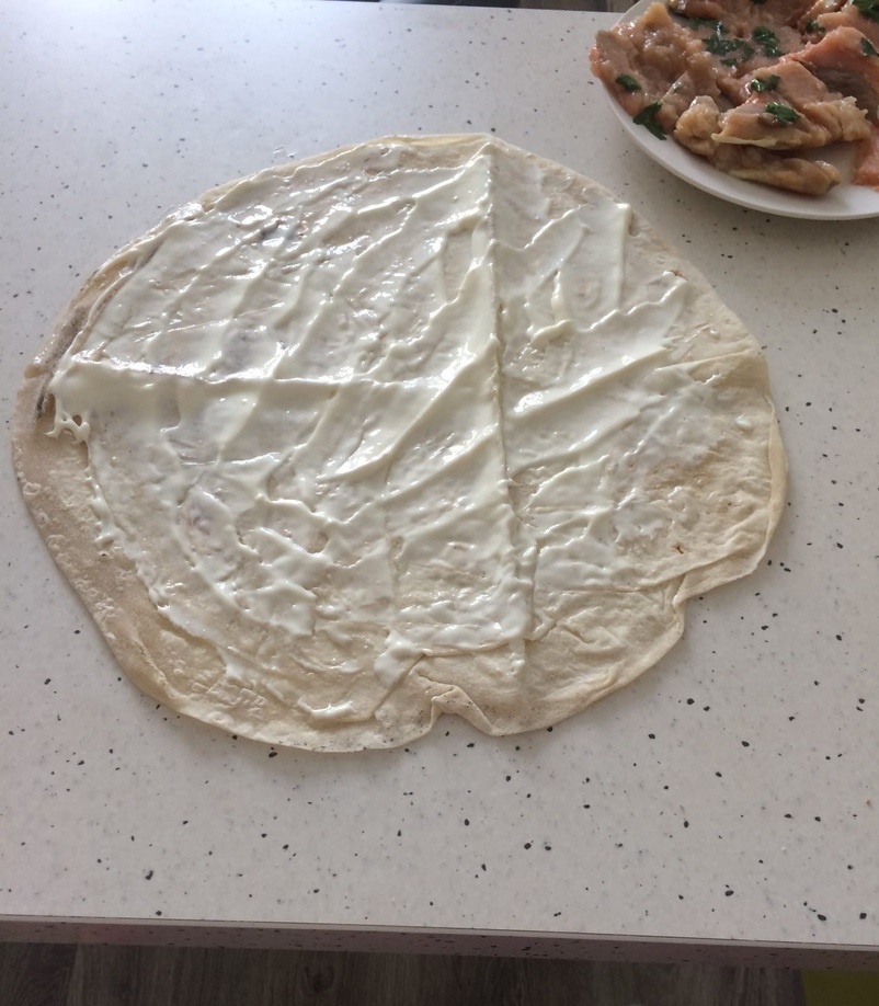 Готовим рулетики с солёной горбушей из лаваша с сыром