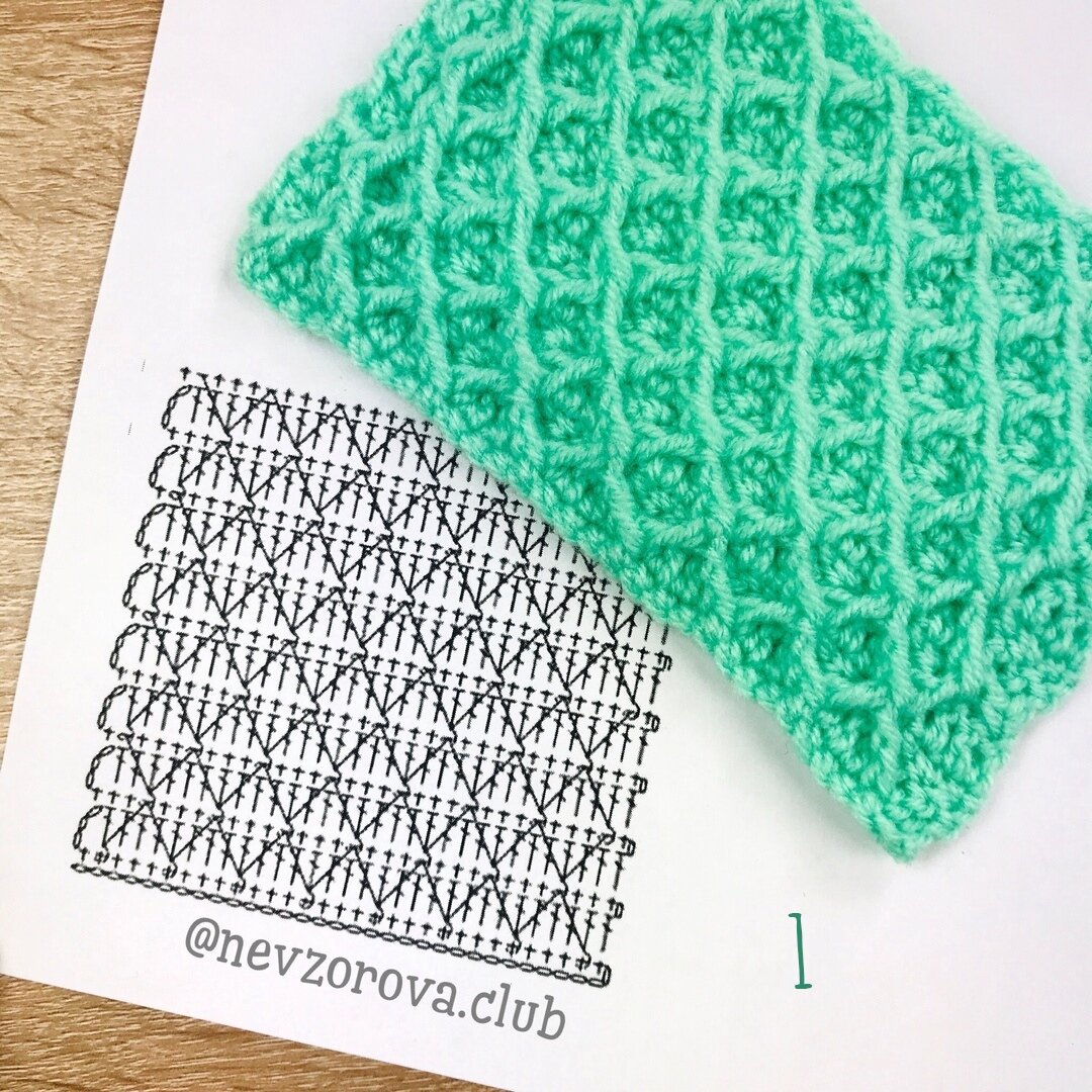 Благодаря рельефным столбикам добавляется фактура рисунка. Использовать такой узор можно для тёплых кардиганов, любых чехлов и сидушек.
