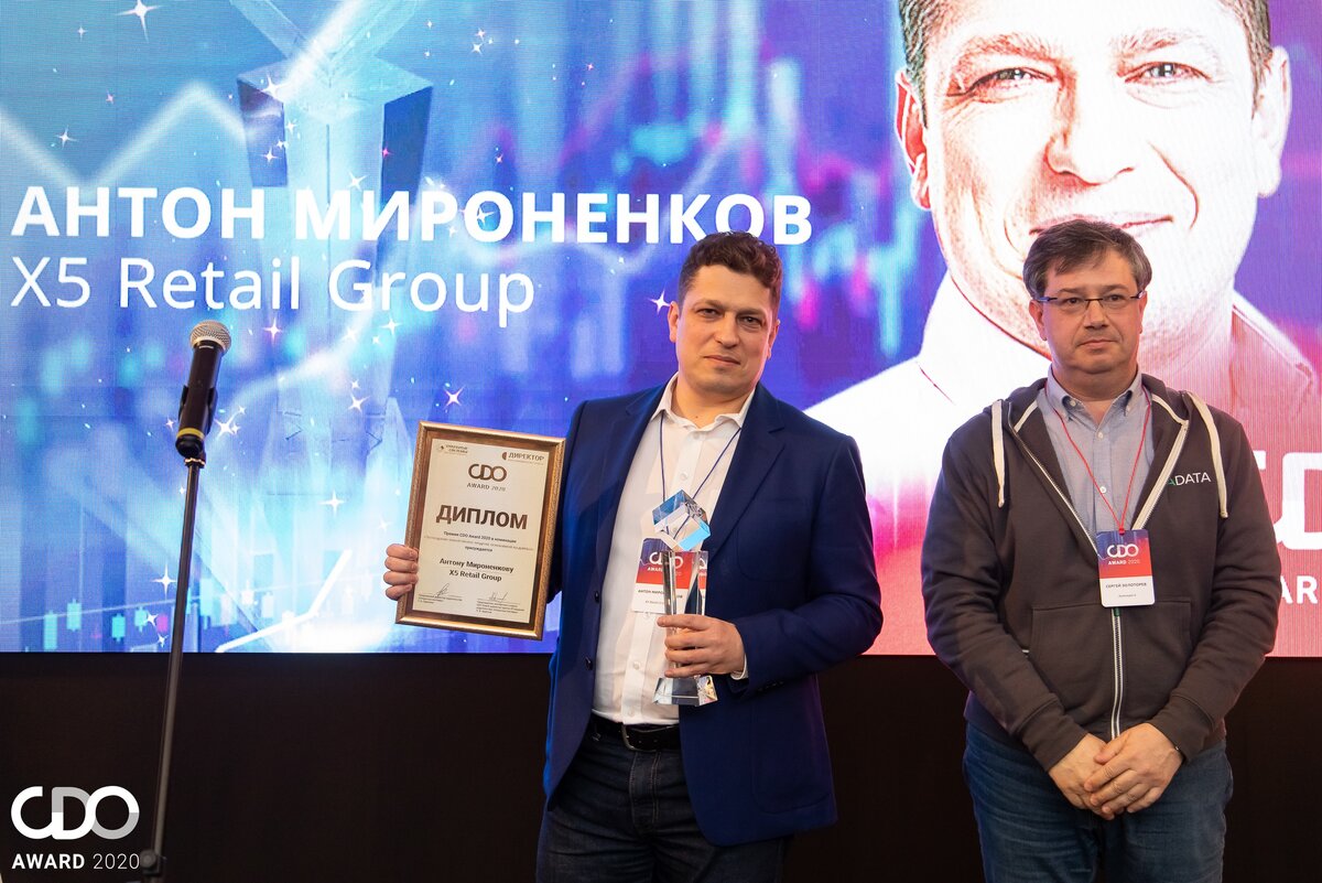 Издательство «Открытые системы» и онлайн-ресурс «Директор информационной службы» подвели итоги конкурса на получение премии CDO Award 2020. Отраслевая награда для директоров по данным (Chief Data Officer) и руководителей аналогичных должностей, доказавших профессионализм и мастерство в своей области, вручается уже второй раз. Награду «За создание новой бизнес-модели, основанной на данных» получил Антон Мироненков, директор по большим данным X5 Retail Group. Таким образом были отмечены успехи команды #bigdatax5 в монетизации данных — вывод на рынок аналитических сервисов для партнеров и поставщиков. Программный продукт Big Analytical Platform позволяет пользователям формировать отчёты с использованием базы данных истории покупок с товарами категорий поставщика в торговых сетях Х5. Таким образом, партнёры компании получают универсальный инструмент, позволяющий анализировать не только продажи, но и другие важные показатели, выявлять источники изменения спроса и переключений потребителей