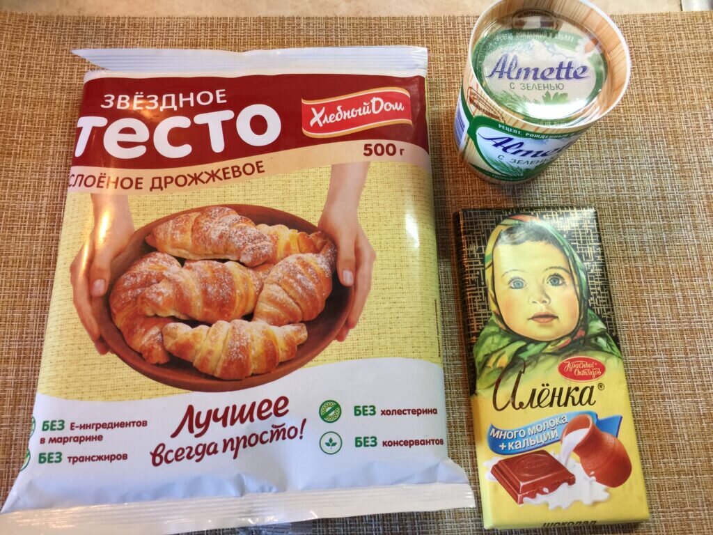 Ингредиенты: Способ приготовления: Разрезаем пакет , достаём пласты теста и размораживаем их. Затем посыпаем стол мукой и раскатываем пласт скалкой. Раскатывать в одном направлении. Пласт должен увеличиться в длину примерно в два раза. Разрезаем его на треугольники. Каждый треугольник с широкого конца надрезаем вдоль по сантиметру. Кладём начинку. Сворачиваем треугольник трубочкой, раздвигая по срезу широкий край. Укладываем сформированные круассаны на противень, застеленный пергаментной бумагой. Если нет бумаги, смазать противень растительным маслом. Дать постоять минут 10. Для придания золотистого цвета готовым круассанам, перед выпечкой можно смазать их взбитым яйцом. Аналогично делаем со вторым пластом. Берем другую начинку. Выпекаем в разогретой до 180 градусов духовке. Из одной упаковки теста получается две партии по 9 штук. Время выпекания 20-30 мин, в зависимости от вашей духовки. Приятного аппетита! Больше рецептов на сайте: https://glaved.ru/kruassany-s-nachinkoj/