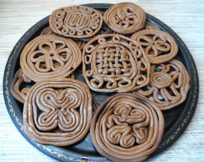 Весна, Весна-Красна! Приди, Весна, с милостью. С солнцем горячим, С дождем обильным. Принеси урожай В наш счастливый край! Так закликали весну в стародавние времена. А ещё пекли жаворонки и тетёрки. Вот о тетёрках я и хочу сегодня рассказать. Нет, это не птицы, хотя название схоже. Тетёрки, тетёры, вьюхи, кокурки – это ажурное обрядовое печенье, которое готовили в день весеннего равноденствия в Архангельской, Каргопольской, Мезенской и других областях северной России. Свивали тетёры из тонких жгутов теста в интересные узоры в виде лесенок в небо, солнца, волн, цветов, птиц, лошадок, решёток. Тетёрки имеют форму круга размером с большую тарелку и непременную обводку по контуру в два-три ряда, обязательно свитую по часовой стрелке (по солнцу). И названия у них интересные - "цветки", "коники", "часики", "в колечушко". Традиционно тетёрки готовят из ржаного теста (ржаная мука, вода, щепотка соли). Уложенное на дощечки печенье выносят на мороз и держат там до утра. По