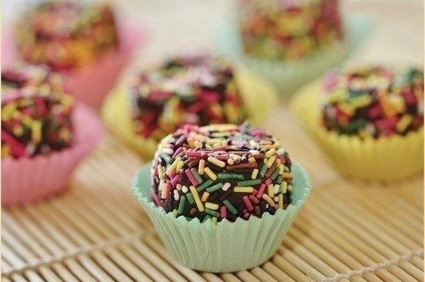 В Бразилии есть замечательное лакомство, напоминающее шоколадные конфеты с начинкой. Называется Бригадейро и готовится из сгущенки. Любимое лакомство бразильцев. Всего 3 ингредиента, а какая вкуснятина! Ингредиенты: 3 ст.л. какао-порошка без добавления сахара 1 ст.л. сливочного масла 1 банка сгущенного молока Приготовление: В кастрюле средних размеров на среднем огне смешайте какао, сливочное масло и сгущенное молоко. Варите, помешивая, пока смесь не загустеет, около 7-10 минут. Снимите с огня и дайте постоять, пока смесь достаточно не охладится. Скатайте маленькие шарики, можно украсить их, обваляв в разных посыпках (например кокосовой стружке, сахарной пудре, измельченных орешках, шоколадных или разноцветных кондитерских посыпках). Подписывайтесь на канал Скоро будет новый рецепт!!!
