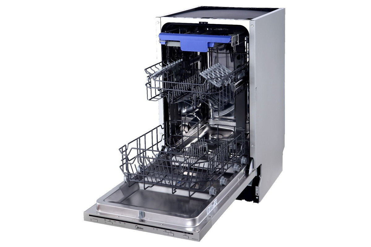 Сравнительно недавно появились посудомойки с тремя корзинами - в верхней плоской корзине размещаются столовые приборы. Мне кажется это гораздо удобнее размещения их в контейнере на нижнем "этаже", поэтому я выбирал посудомойки именно с такой компоновкой. Я знал, что такие есть у Midea и Bosch.