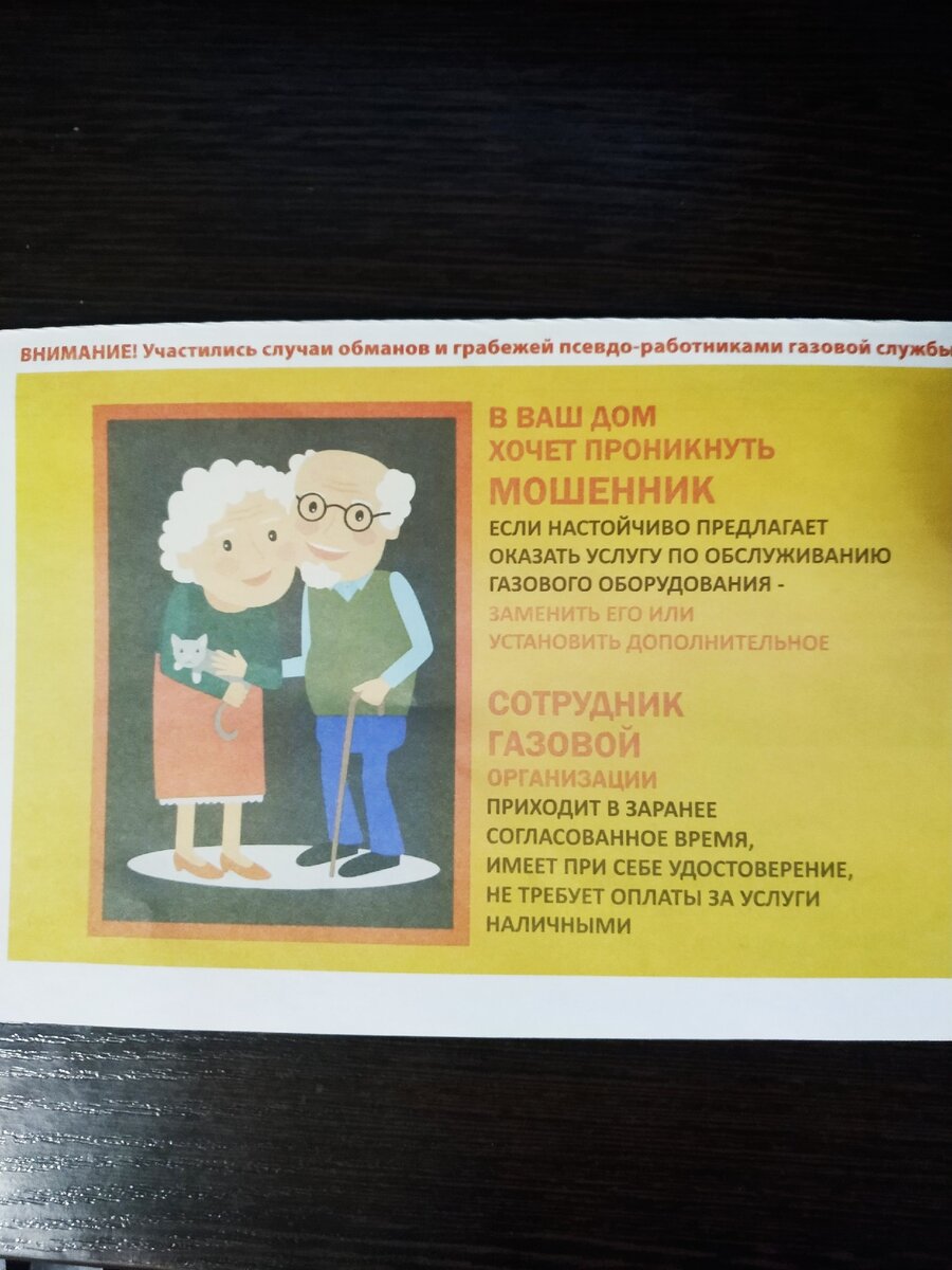 Будьте осторожны участили случаи обманов грабежей причем не только псевдо-газовой службы как мы видим из рассылки предоставленной на фото это могут быть сотрудники любых ведомств и организаций это и сотрудники Пенсионного фонда и всякие соцработники работники ЖКУ...!!! Конечно же подвержены больше пенсионеры и дети находящиеся одни дома, но конечно мошенники последнее время все более изощренные и могут обмануть любого!!! Если это сотрудники проверяющих инстанций тогда они обычно приходят в заранее согласованное время или по графику. Например: Сотрудники обязательно должны иметь при себе удостоверения, так как даже документы могут подделать лучше связаться с офисом если как в данном случае газовой службы. Особенно если начинают что то навязывать говорить что нужно что заплатить не соглашайтесь так же свяжитесь организацией уточните всё так же обязательно просите квитанцию что бы доказать в дальнейшем если понадобится факт оплаты. Сейчас почти по всех организациях присылают платежки из