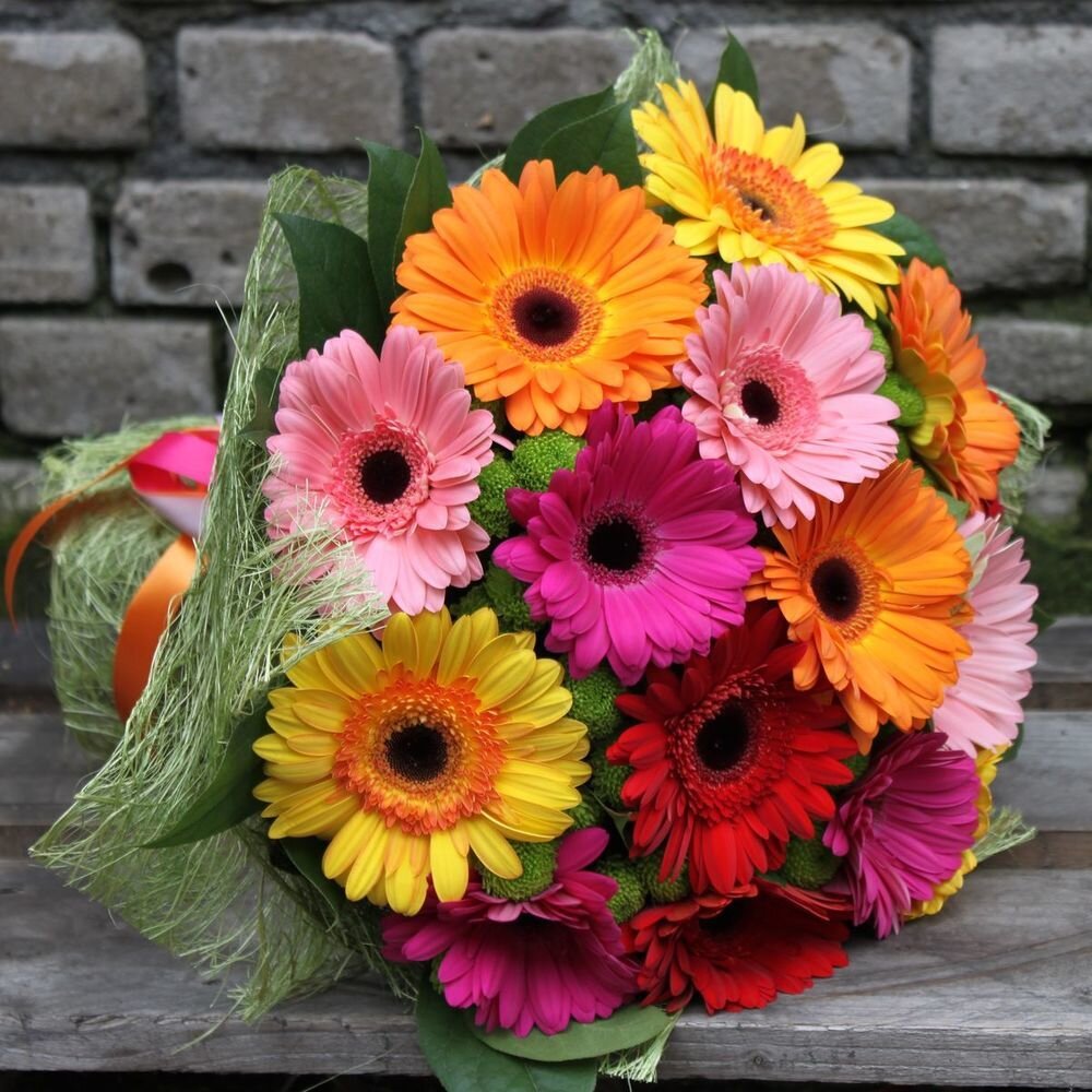 Цветы отлично дополняют букеты с едой. Любая мастерица сходу назовёт тебе как минимум три: эустому, альстромерию и, пожалуй, розу. Они универсальны. А что ещё, знаешь? Лови список. Эти цветы дополнят вкусный букет: - Герберы - тут и простота, и утончённость, и сочность красок. Кстати, они почти не пахнут, что только на руку в съедобном букете. Но не переборщи, всё-таки герберы очень большие, яркие и могут отвлекать внимание от других - съедобных - ингредиентов. - Фрезия - растение-аристократ. Воздушное и ароматное. Выберешь фрезию – добавишь благородства и романтического очарования в любой фуд-букет. - Пионы – как же эти пушистые шапки смотрятся в букетах с фруктами! Есть одно ограничение: сочетай пионы только с теми ингредиентами, которые клиент 100% помоет перед употреблением – этот цветок немного ядовит. Запомни: с фруктами и овощами – да. Со сладостями – нет. - Седум - выразительный, фактурный цветок разнообразной цветовой гаммы - от нежно-салатовой, серо-мятной до краснова