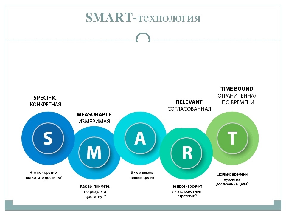 Каждый человек о чём-то мечтает и стремится к этому...или просто мечтает! Но почему кто-то доходит до финиша, а кто-то нет? Однажды, будучи на очередном тренинге, группу спросили: "Чего вы хотите?". Я ответила первой: "Хочу денег!". Мне дали трехлитровую банку копеечных монеток со словами: "Держи!". Моему недоумению не было предела. Ведь я же хотела солидную круглую деньгу, а не сбербанку. Другие из группы хотели карьеру, недвижимость в Москве... угадаете, что дали им? Тогда нас познакомили с моделью SMART. А сегодня с ней познакомлю вас я: Конкретность. Вы должны чётко сформулировать желаемое. Плохой пример: начать заниматься спортом . Хороший пример: похудеть к лету с помощью тренировок в спортивном зале. Что изменилось? Зачем нам заниматься спортом? Подняться по лестнице это спорт? Можно найти 1001 отмазку к неконкретности. Измеримая. Мы должны отслеживать свой результат, понимать, в какую сторону движемся, насколько приближаемся к цели. Плохой пример: начать заниматься спорт
