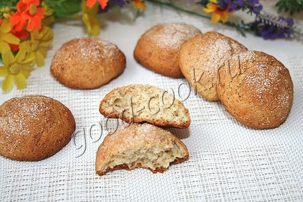 - У печений хрустящая сахарная корочка, а внутри они мягкие. Аромат, особенно пока они тёплые, насыщенный банановый. Я не люблю бананы в выпечке, ни в качестве начинки, ни в составе теста. Но эти печенья получились очень удачными. Банановый аромат сильный, но не резкий. А фактура печений просто прекрасна.