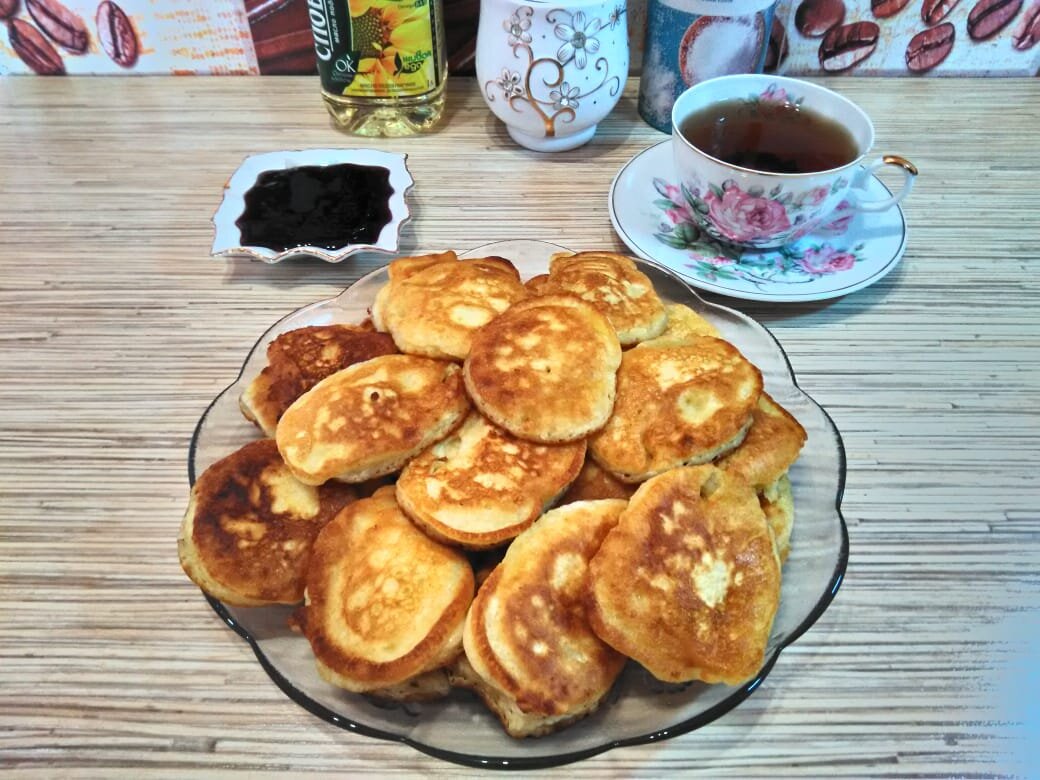 Повторно тесто перемешивать нельзя, чтобы тесто осталось воздушным. В сковороду наливаем растительное масло, разогреваем.