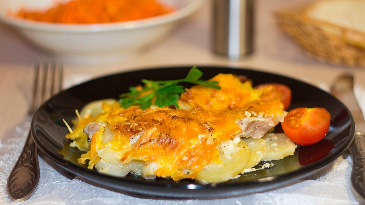 Популярное и очень вкусное блюдо из мяса, запеченного с картофелем под красивой корочкой из плавленного сыра. Мясо по-французски с картофелем - это то, что непременно стоит попробовать! Блюдо обрело популярность благодаря своему великолепному вкусу, сытности и эффектности, а также тому, что нравится оно практически всем - и детям, и взрослым. Количество порций: 3 Время приготовления: 2 часа Ингредиенты: Способ приготовления: Приятного аппетита!!!