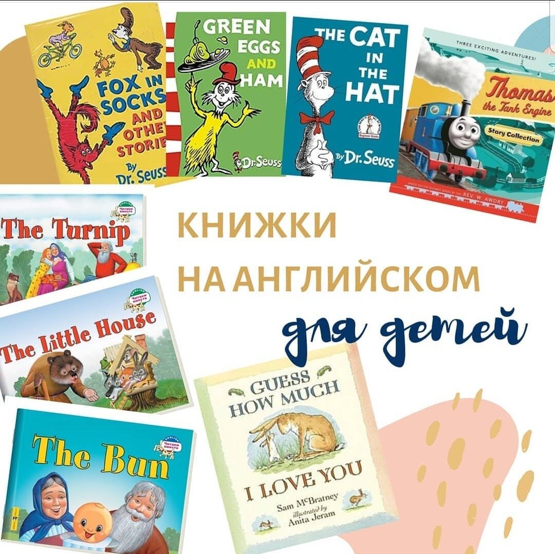 Многие задаются вопросами: а какие книжки читать деткам на английском? А как выбрать? А оригиналы или адаптированные❓⠀ Разберемся со всем по порядку на конкретных примерах книг 📖⠀ 📘 Что ж... ребенок несильно отличит оригинал от адаптированного перевода. При этом можно читать народные сказки на русском и на английском (адаптированный перевод). Так ваш малыш будет лучше понимать лексику и вникать в суть сказки. ⠀ 📚 Например, у издательства @айриспресс есть серия ярких тонких книжек с русскими народными сказками: The bun (колобок), The turnip (репка), The little house (теремок) и многое другое. К тому же они короткие и поучительные. 📗 Можно выбрать книги, в которых присутствует рифма, стихотворения. Их плюс в том, что ребенок запоминает не отдельные слова, а срузу фразы, таким образом он неосознанно изучает и грамматику языка и правильный порядок слов в предложении. ⠀ 📚 Например, книги известного своим "Гринчем похитителем Рождества" Dr. Seuss написаны таким образом, что ребенок по