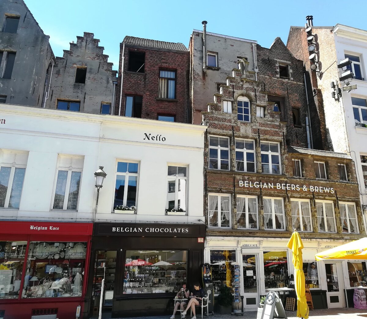 На вывеске магазина справа белым по кирпичному читаем: Belgian Beers & Brews - Бельгийское пиво и пивоварня. Получается, зайдя в эти три магазина, можно приобрести с