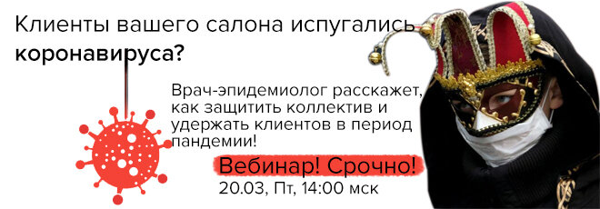 Паника сегодня – дело привычное. Кто-то пишет про пустые полки в супермаркетах, повсеместно закрываются рестораны, торговые зоны, общественные мероприятия отменяют. Но есть ли угроза салонам красоты? Только в том, что напуганные клиенты засядут в карантин, хотя могли бы наслаждаться процедурами по уходу за телом… На нашем вебинаре в пятницу, 20 марта, в 14:00 по московскому времени, эксперт журнала «Директор салона красоты» врач-эпидемиолог Елизавета Дубель расскажет, как защитить коллектив салона красоты и удержать клиентов в период пандемии. О чем поговорим: Приходите! Победим панику вместе. Ссылка для регистрации – бесплатно с Дзена Зарегистрироваться >>