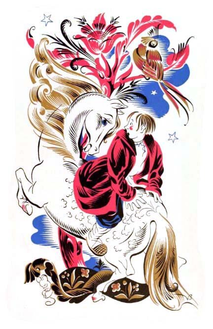 Если Борис Арцыбашев был королем иллюстрации в стиле ар-деко, то Веру Бок можно было бы назвать ее королевой. Американская художница Вера Бок родилась в Санкт-Петербурге в 1905 году, в семье американского банкира и концертирующей русской пианистки. После революции 1917-го, семья бежала в Америку и обосновалась в Сан-Франциско. В юности Вера изучала рисунок и живопись в Европе, год провела в Великобритании, а затем вернулась в США, где вплотную занялась дизайном и иллюстрацией. В 1929 году Вера Бок оформила свои первые книги - «The Tangle-Coated Horse» Эллы Янг и «The Adventure of Maya Bee» Вальдемара Бонселя. Бок также сотрудничала с журналами, принимала участие в выставках и художественных проектах - например, разрабатывала плакаты для Federal Art Project. Но основным ее полем деятельности всегда оставалась книжная графика. За свою карьеру она оформила несколько десятков книг, выполнила иллюстрации к турецким, русским, шотландским, кельтским сказаниям, Корану и "Сказкам тысяч