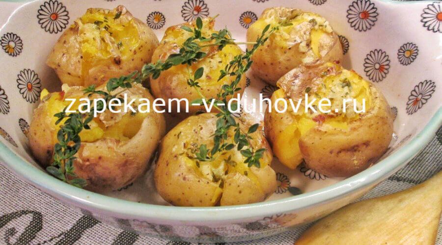 соль, перец по вкусу Прежде всего картофель тщательно моем. После этого заворачиваем каждый клубень в фольгу. Духовку предварительно нагреваем до температуры 200 *С. Затем укладываем картофель, упакованный в фольгу на противень или в форму для запекан