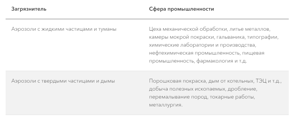 Методы очистки воздуха от аэрозолей, дыма, тумана