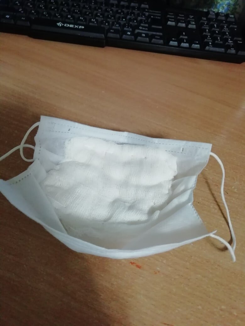Ребенку в садике велели сделать ватно-марлевую повязку, ну,обычную,советского образца. Но тут у меня возникла идея сделать из обычной медицинской маски плюс еще и ватно-марлевую. Сделал небольшую ватно-марлевую вставку, и пришил ее в медицинскую маску. Теперь она называется маска медицинская усовершенствованная. По идее можно менять вставку ватно-марлевую, а основу оставлять. Получилось неплохо вроде. Готов выслушать ваши комментарии.