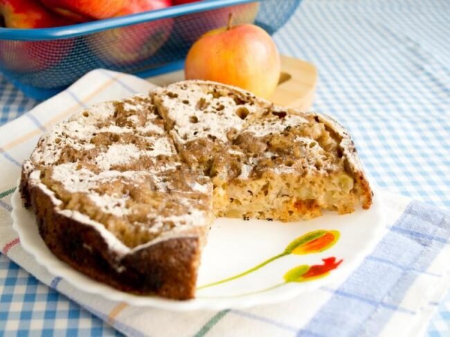 Такую шарлотку можно подавать к столу сразу, не дожидаясь ее остывания.